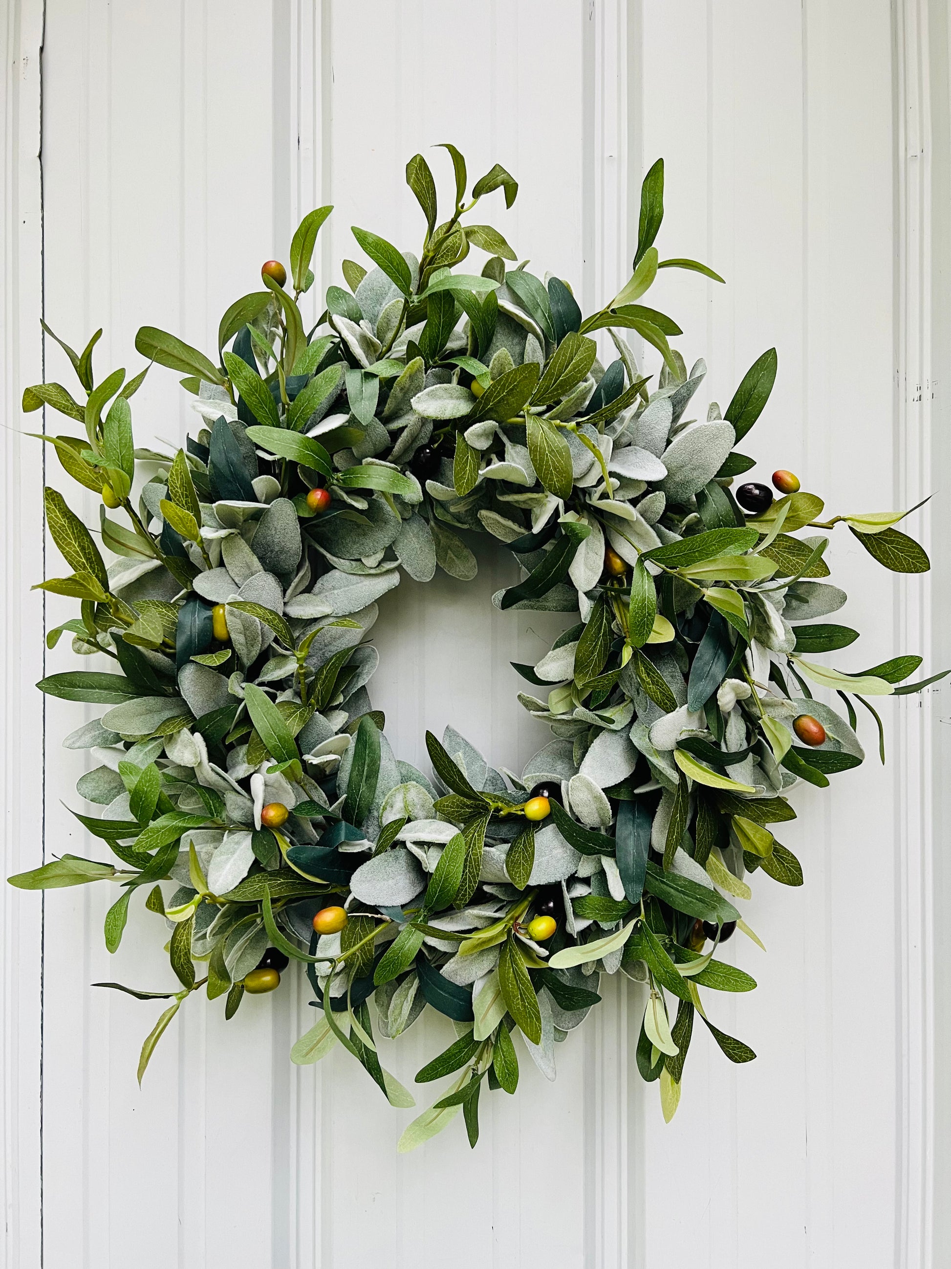 This beautiful wreath is perfect all year long and can be dressed up with a bow for that extra special touch.
